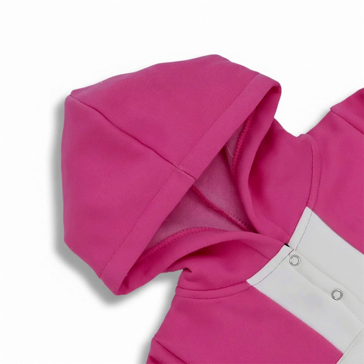Wrap your baby in luxury with our ultra-soft Baby Hood Romper in Pink. Its cozy fleece will keep them warm on chilly days, while the adorable hood adds an extra layer of snugness. The gentle pink color is as charming as your precious bundle of joy, and the convenient snap closures make changing a breeze. Perfect for tender snuggles and playful moments, this romper is a must-have for any fashionable and discerning parent.