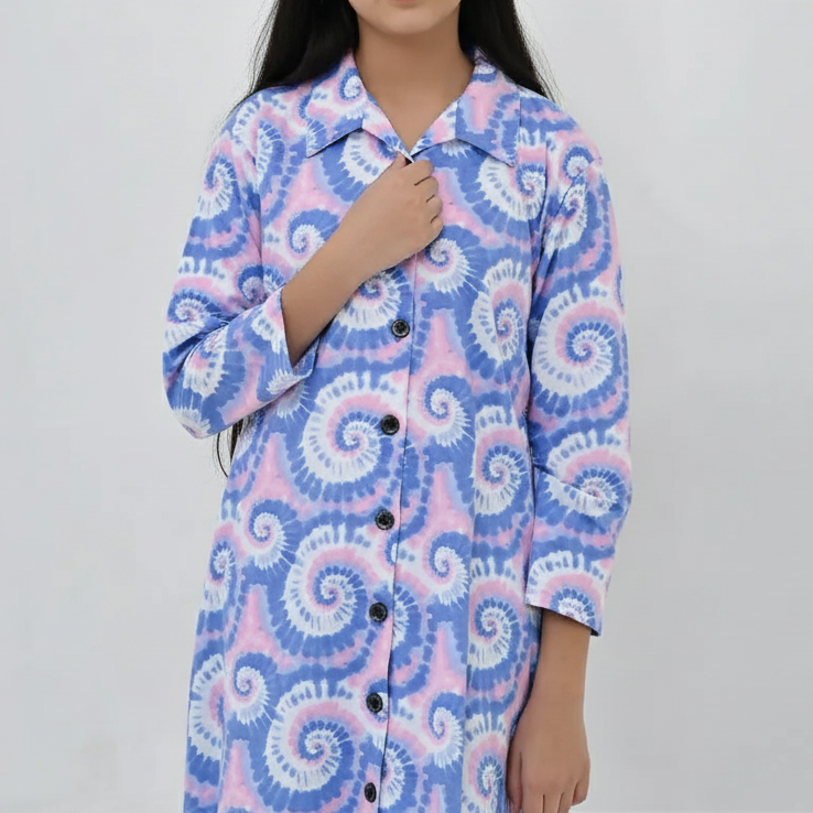Add a tropical vibe to your girl’s wardrobe with our Hawaiian Printed French Terry Co-ord. Crafted from soft French Terry fabric, this set features a vibrant and colorful Hawaiian print in a blend of soft pastel tones. The button-down shirt exudes a laid-back, yet stylish appeal, while the matching trousers complete the coordinated look, offering both comfort and flair.