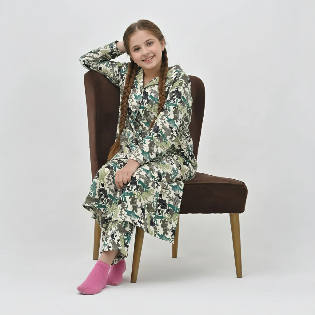 Elevate your girl’s wardrobe with our Paisley Printed French Terry Co-ord Set. Crafted from soft French terry fabric, this set features a vibrant, allover paisley print on a crisp white button-down shirt. The matching printed trousers complete the look for a stylish and coordinated ensemble. The bold patterns and comfortable fit make it a fun, fashionable choice for any day.
